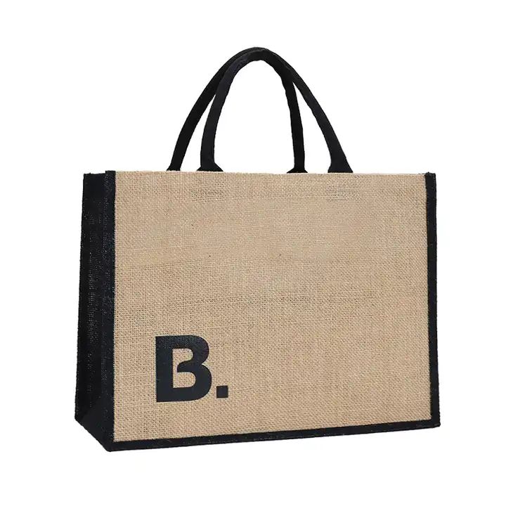 This bag is made of black color jute and nature color ,There are various fabric colors and handle that can be freely adjusted and matched. The advantages of burlap tote bags include: sturdy, durable, waterproof, eco-friendly, and fashionable.